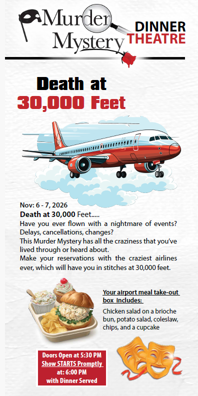 Have you ever flown with a nightmare of events? Delays, cancellations, changes? This Murder Mystery has all the craziness that you’ve lived through or heard about. Make your reservations on the craziest airlines ever, that will have you in stitches, 30,000 feet high.